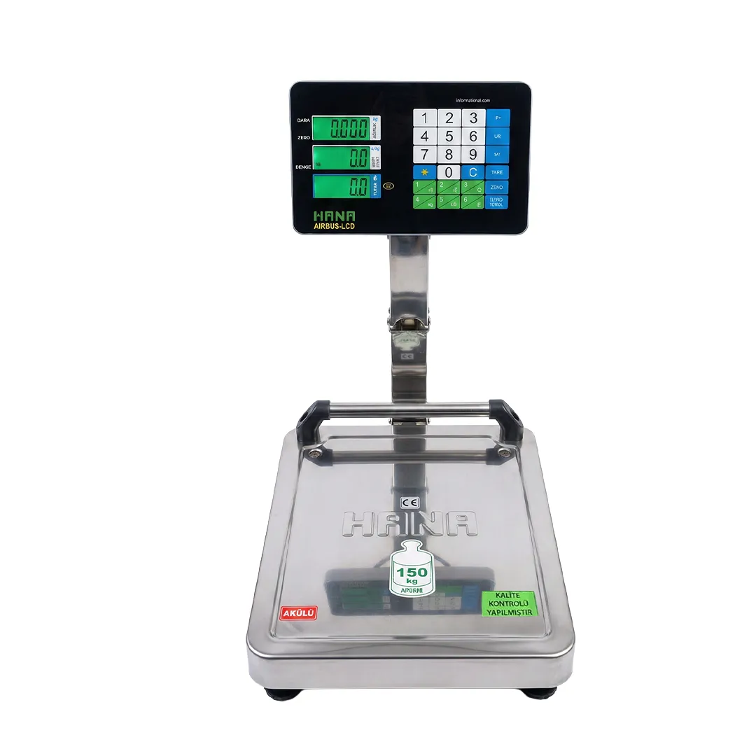 Hana Airbus-LCD 150 Kg Boyunlu Dijital Terazi - Akülü Fiyat Hesaplamalı Katlanır Kantar