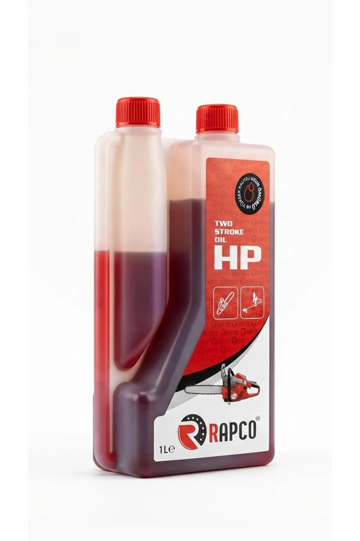 Rapco HP (High Performance) 2 Zamanlı Motor Yağı, yüksek devirli çalışan benzinli ağaç kesme motorları (testere) ve ot tırpanları için özel olarak formüle edilmiştir. Yüksek yanma direnci sayesinde motor içerisinde kurum oluşumunu engeller, piston ve silindir ömrünü uzatır. Kırmızı rengi sayesinde benzine karışıp karışmadığını kolayca ayırt edebilirsiniz.