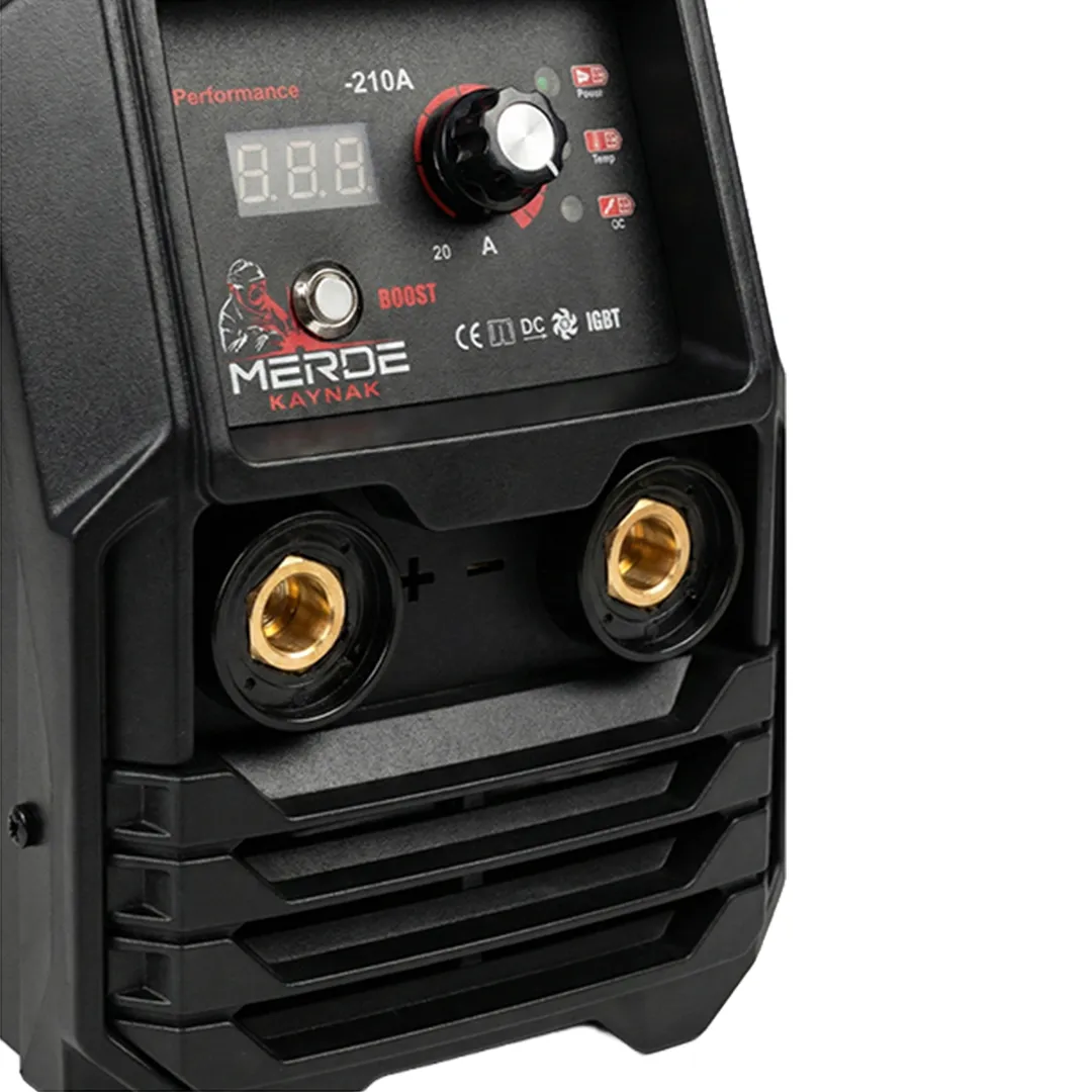 Günbeyaz Teknik kalitesiyle sunulan Merde 210A, kompakt tasarımı profesyonel fonksiyonlarla birleştiren özel bir modeldir. Panel üzerinde yer alan "Boost" özelliği sayesinde, elektrot tutuşmasını hızlandırarak işe kesintisiz ve temiz bir başlangıç yapmanıza imkan tanır.