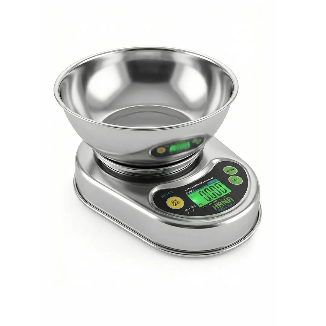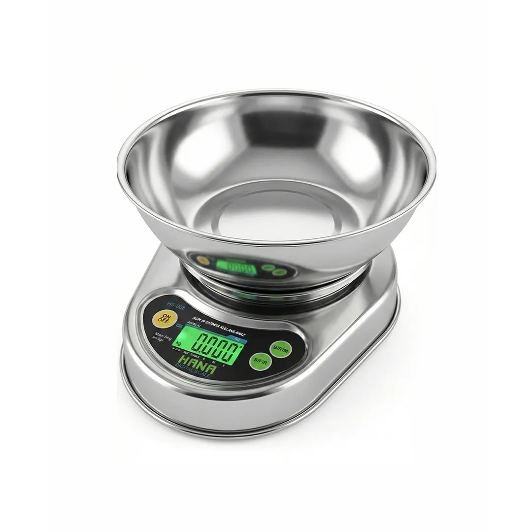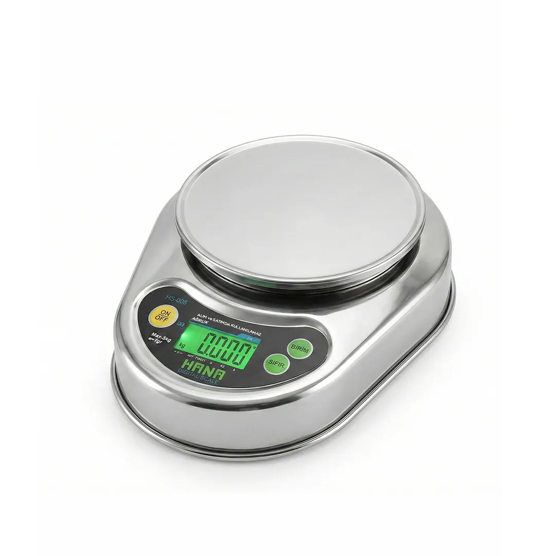 Hana HS-008, mutfaklarda hijyen ve dayanıklılık arayanlar için tamamen paslanmaz çelik gövde ve kefeden üretilmiştir. Plastik terazilerin aksine, "Full Paslanmaz" yapısı sayesinde su sıçramalarına karşı dirençlidir ve kolayca temizlenir.