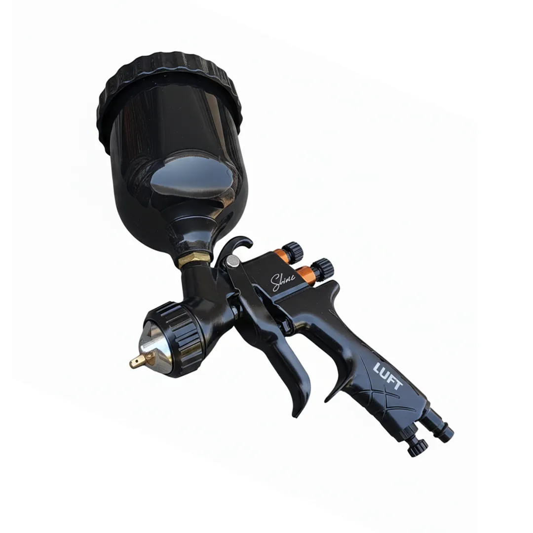 Luft Black Shine, 1.3 mm standart nozul çapı ve 3.5 bar çalışma basıncı ile otomotiv boyaları, mobilya vernikleri ve son kat uygulamaları için geliştirilmiş profesyonel bir boya tabancasıdır. Özel tasarlanmış siyah gövdesi ve ergonomik yapısı, uzun süreli kullanımlarda el yorgunluğunu minimize eder.
