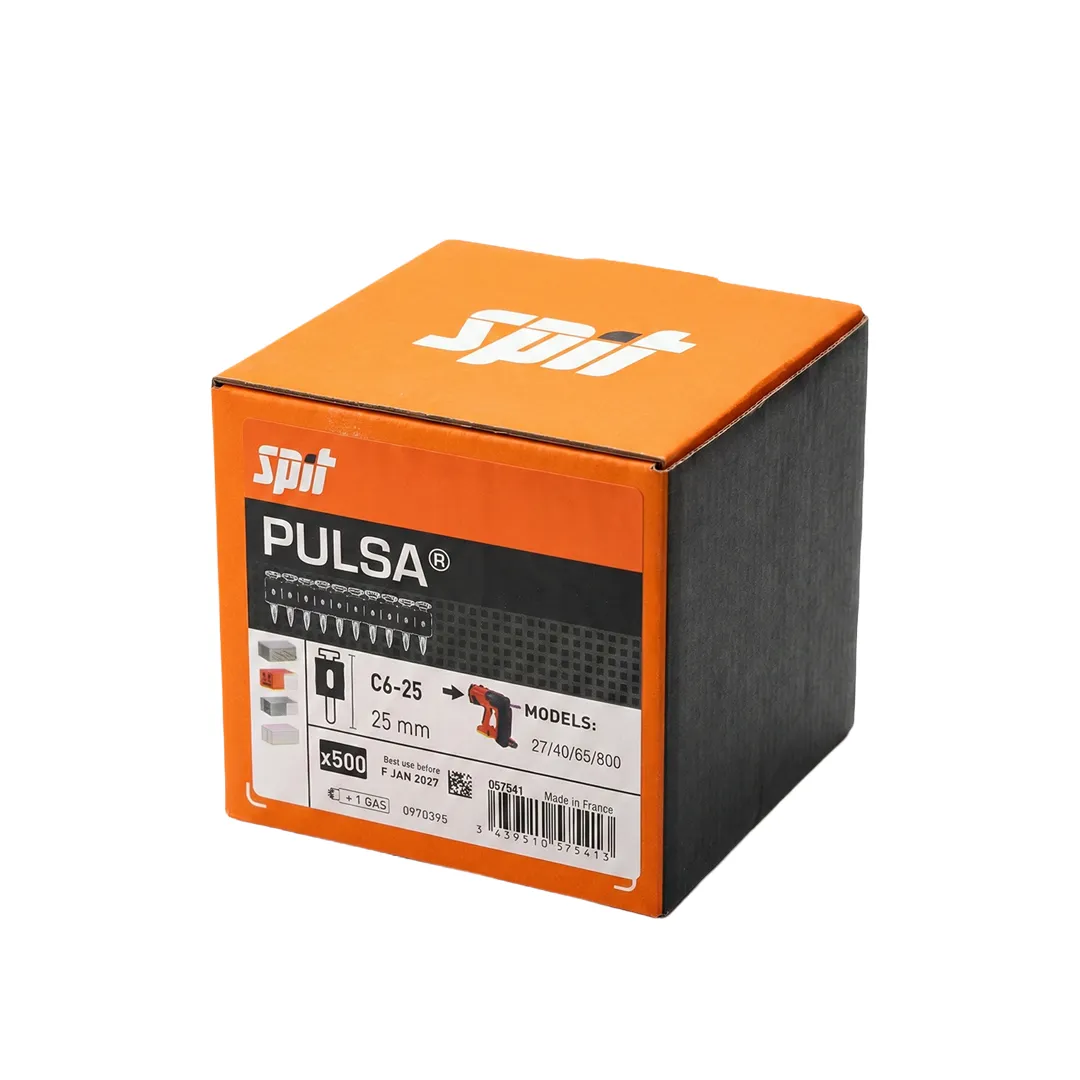 Spit Pulsa C6-25, gazlı çivi çakma tabancalarıyla beton, çelik ve dolu tuğla gibi sert yüzeylere montaj yapmak için tasarlanmış profesyonel bir settir. Fransa menşeili bu ürün, ağır hizmet koşullarında yüksek tutuş gücü sağlar.