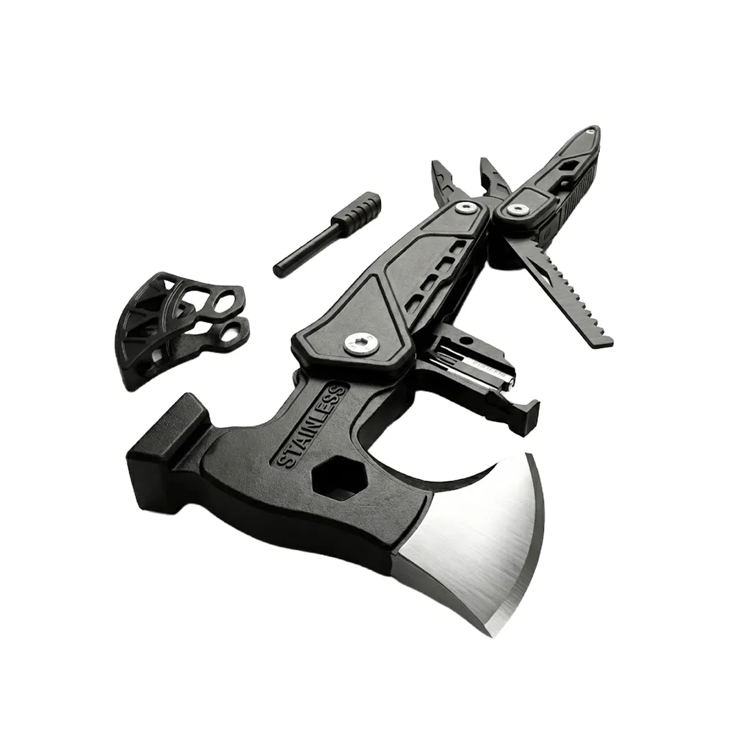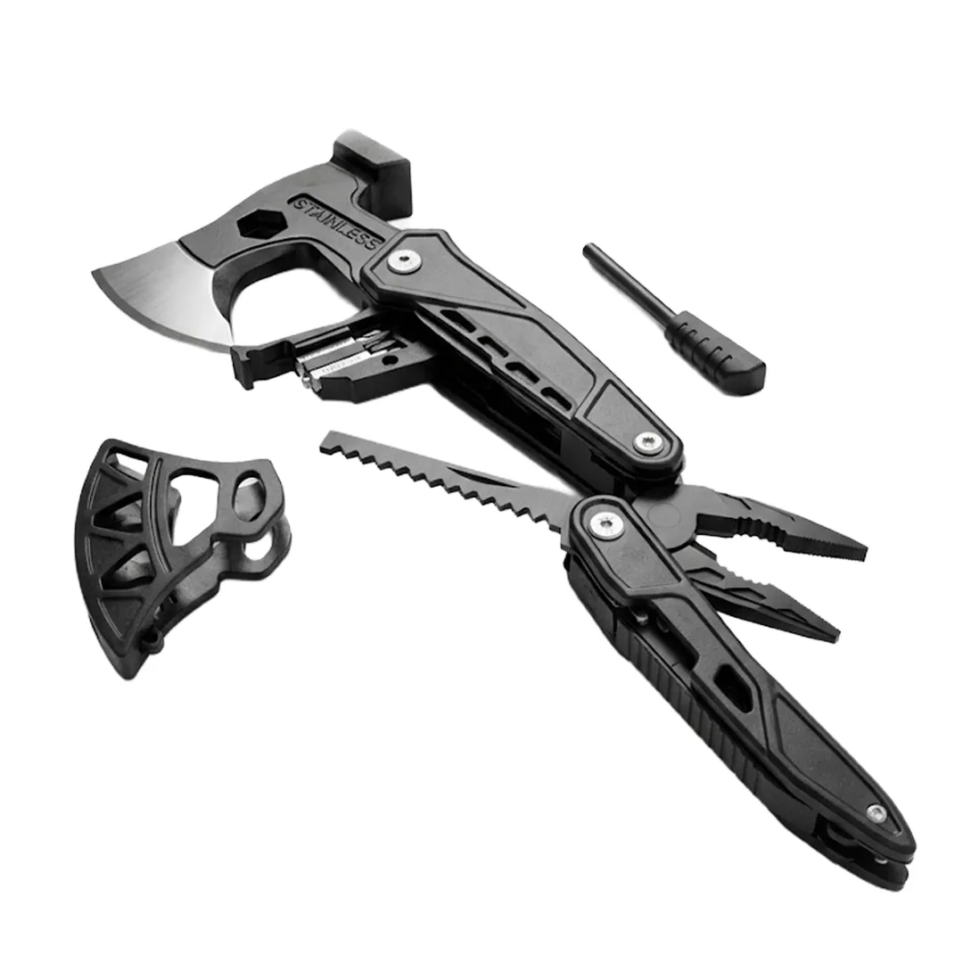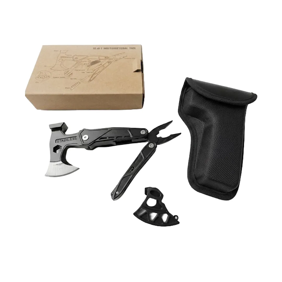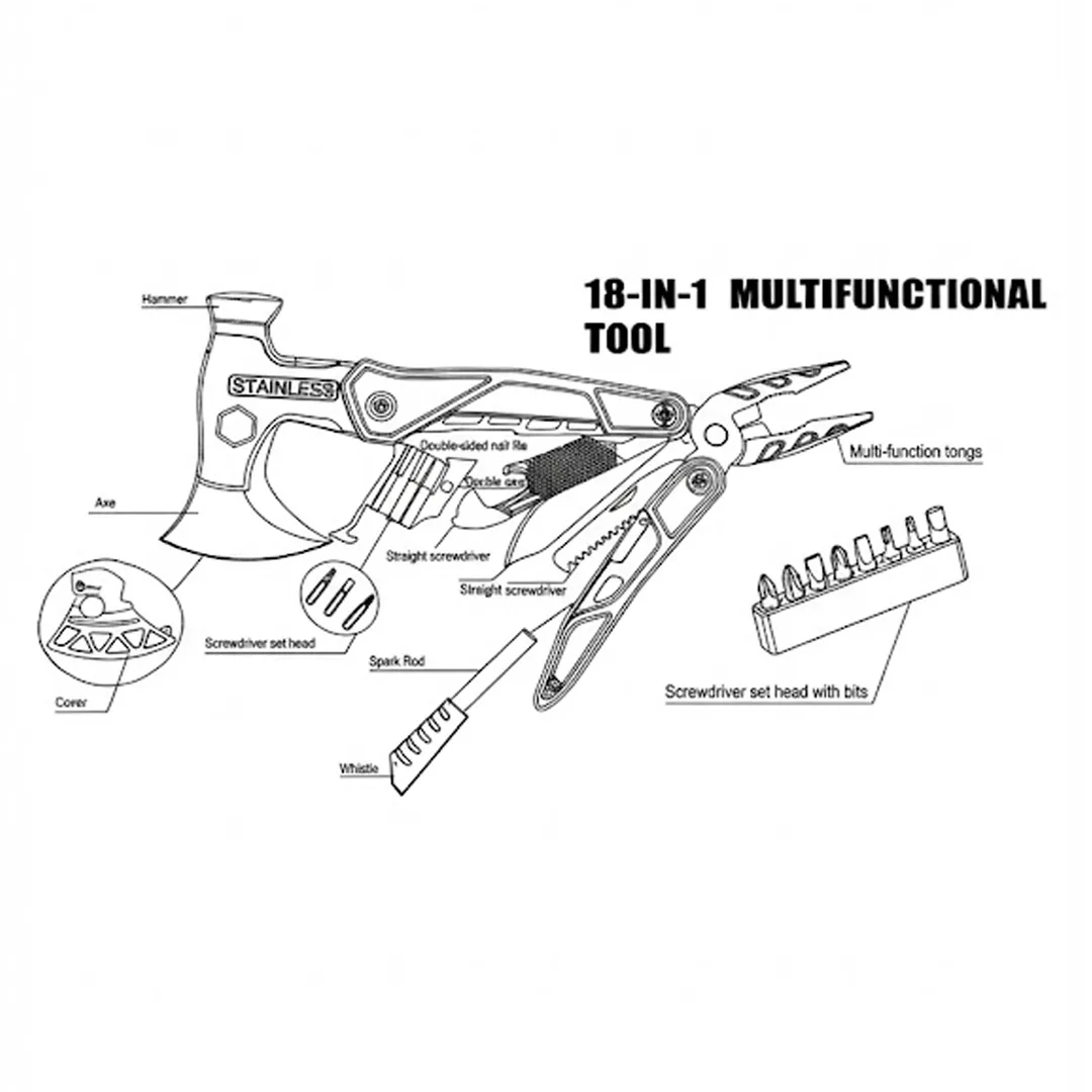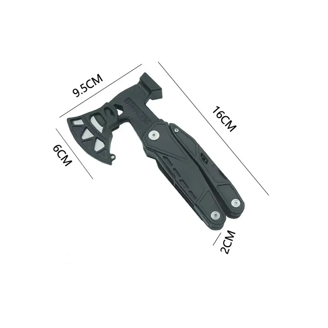 18'i 1 Arada Paslanmaz Çelik Çok Amaçlı Kamp Aleti (Balta, Çekiç, Pense Seti)