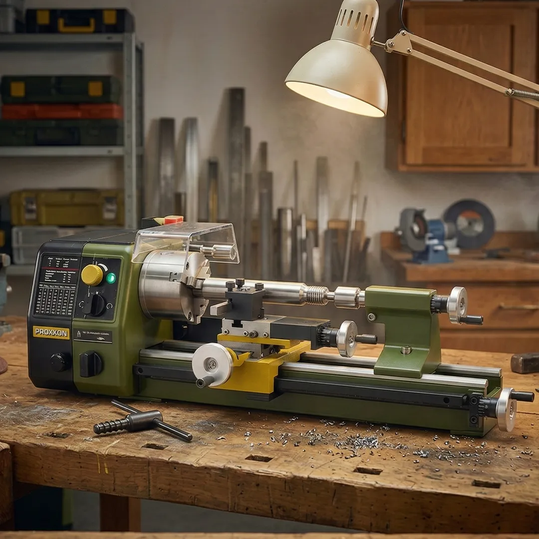 Proxxon PD 250/E, atölyesinde çelik, alüminyum, pirinç ve plastik materyalleri kalibre eden profesyoneller için Avrupa'da üretilmiş yüksek hassasiyetli bir masaüstü işleme merkezidir. Makinenin temelini oluşturan dökme demir prizmatik kılavuzlu gövde, en ağır talaş kaldırma operasyonlarında dahi titreşimi sönümleyerek 0.04 mm eşmerkezlilik toleransına sahip DIN 8386 Sınıf 1 torna aynasının sıfır hatayla çalışmasına olanak tanır.