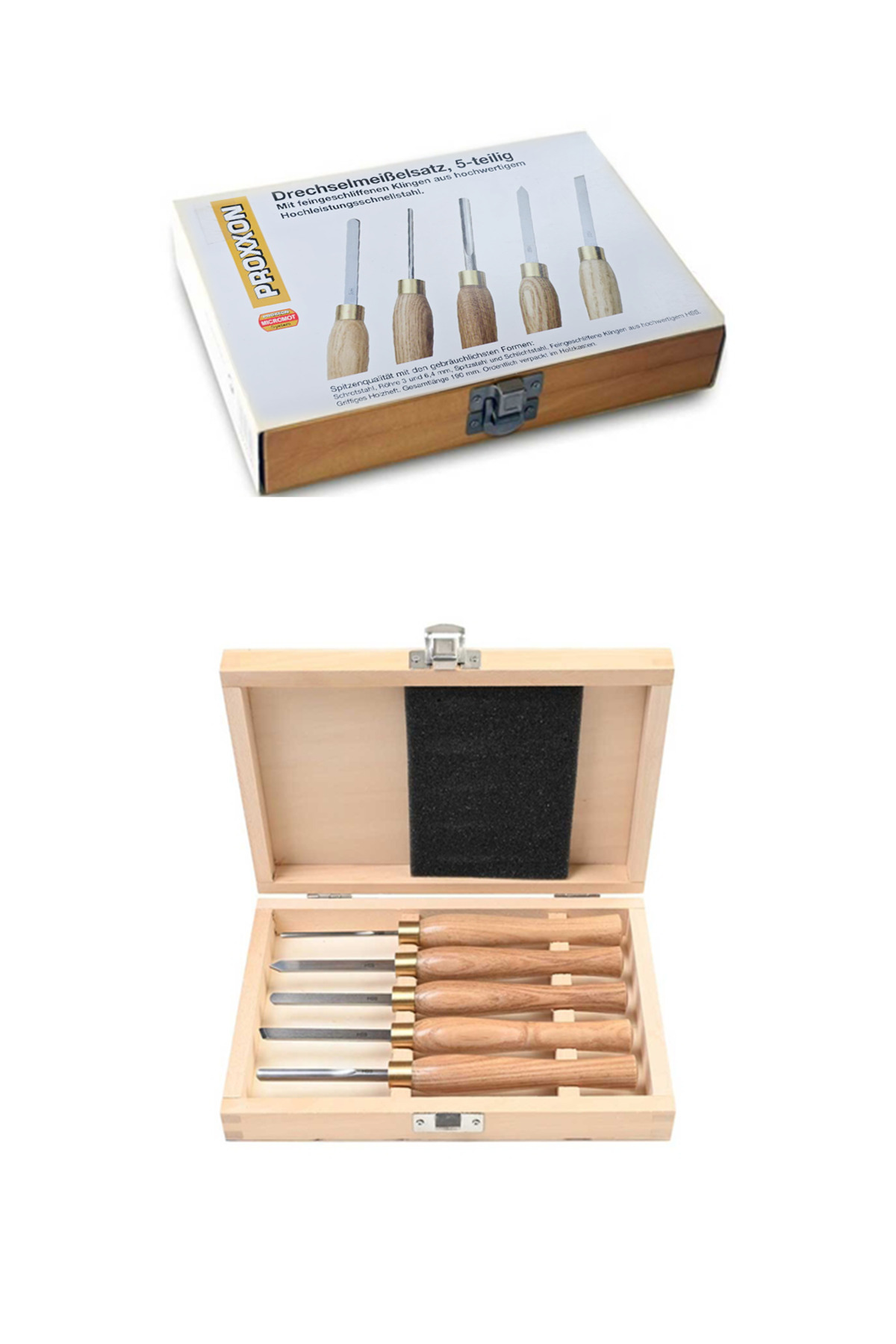 Proxxon 27023 5 Parça HSS Ahşap Torna Kalemi / Keski Seti (Ahşap Kutulu)