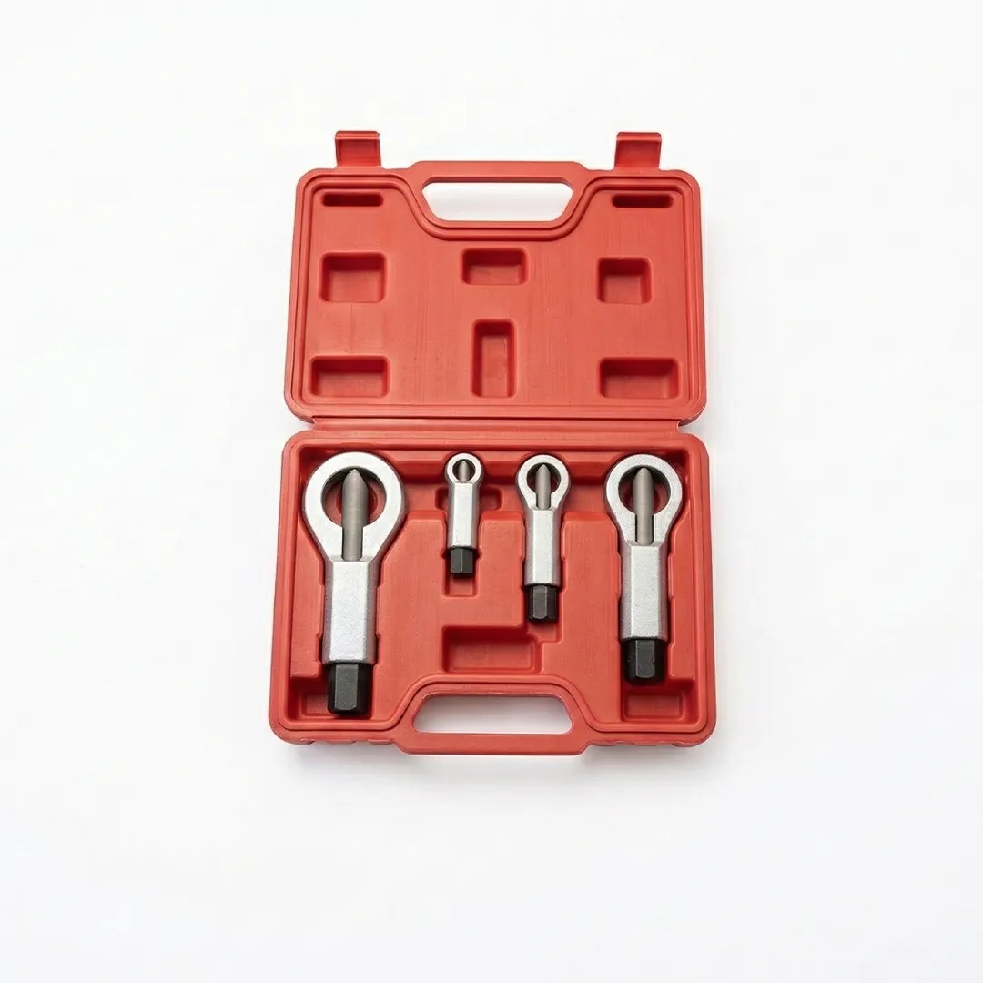 Poldi 4 Parça Profesyonel Somun Patlatma ve Kesme Seti - Kırmızı Taşıma Çantalı