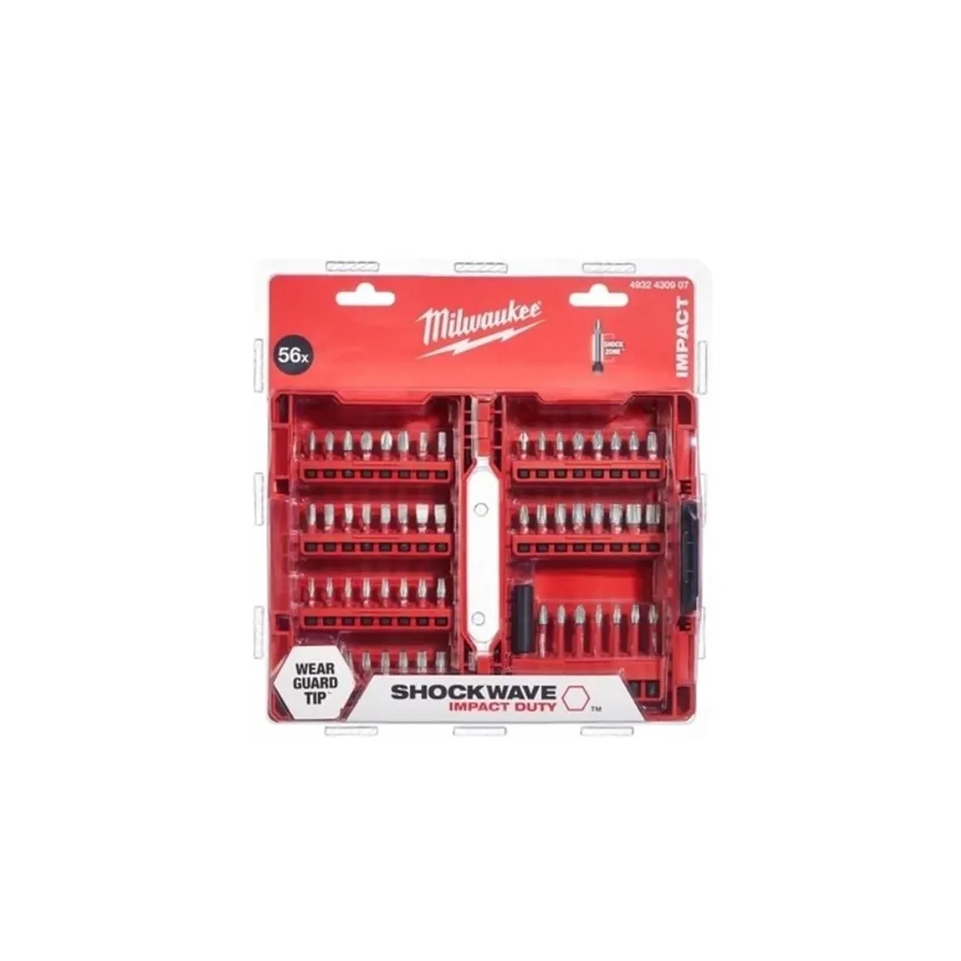 Milwaukee markasına ait T4932492006 model kodlu profesyonel 56 parça bits uç setidir. Özel kırmızı taşıma çantası içerisinde gelen bu geniş set darbeli vidalamalar ile kullanım için tasarlanan Shockwave Impact Duty serisinin bir parçasıdır. Gelişmiş aşınma direnci ve vida başlığına tam uyum sağlaması için uç kısımlarında lazerle sertleştirilmiş Wear Guard Tip donanımına sahiptir. Kutu içerisinde 48 adet 25 mm uzunluğunda bits uç 7 adet 50 mm uzunluğunda bits uç ve 1 adet 60 mm uzunluğunda Shockwave manyetik bits uç tutucu bulunmaktadır. İçeriğindeki PH PZ TX Hex ve SL profilleri sayesinde profesyonel ustaların şantiyede tüm delme ve sabitleme ihtiyaçlarına yönelik eksiksiz bir sistem çözümü sunar. Dayanıklı taşıma kutusu içerisindeki özel yuvaları sayesinde uçlar kaybolmadan ve sarsılmadan düzenli bir şekilde muhafaza edilir.